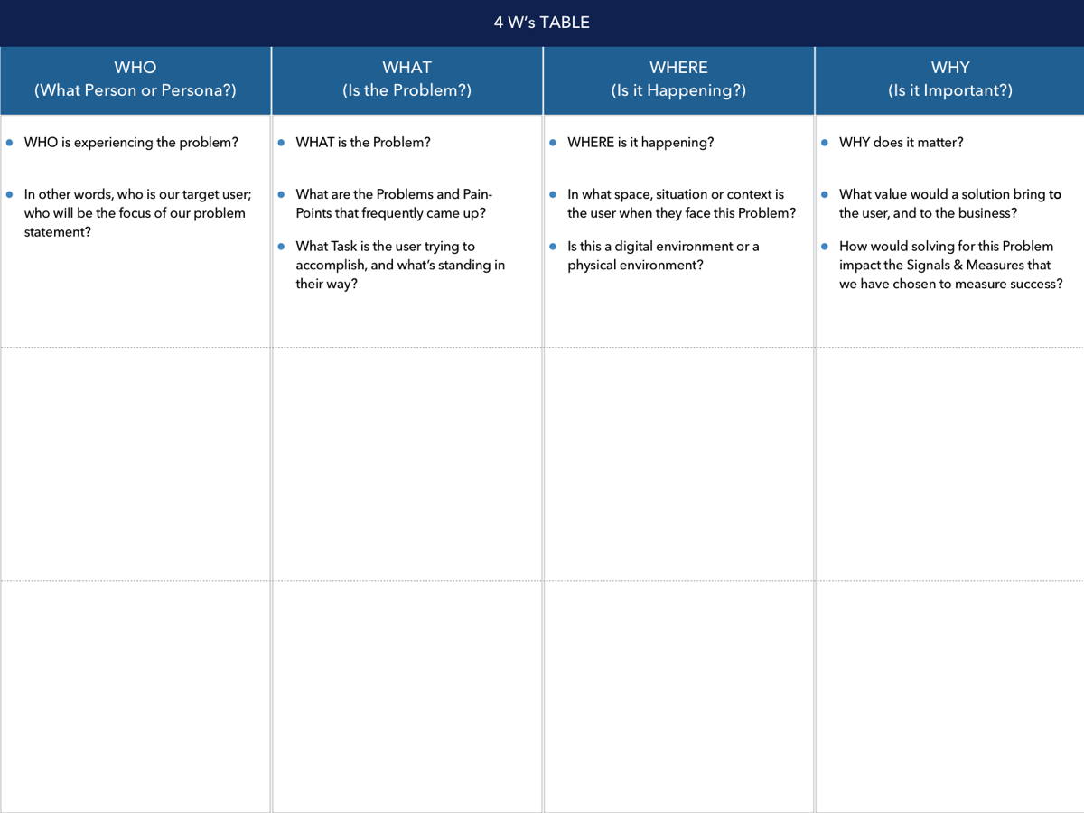 Develop a deep and empathetic understanding of our users’ Goals, Needs and Pain Points.